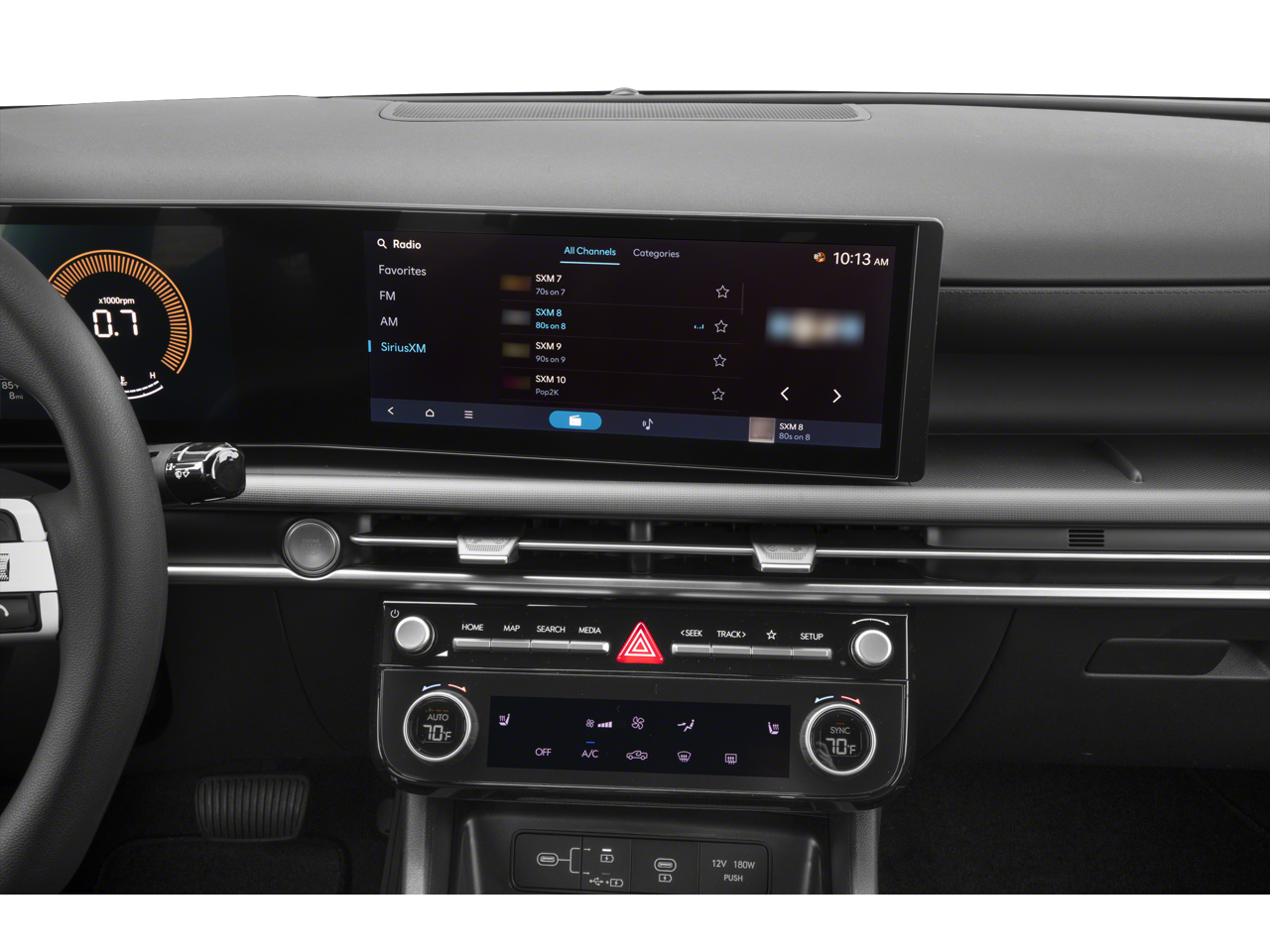 • Radio: AM/FM/HD Audio System -inc: 12.3" color touchscreen display (ccNc lite), 6 speakers, Blue Link+ connected car system, SiriusXM satellite radio w/3-month trial subscription, wireless Apple CarPlay and Android Auto integration, Over-the-Air (OTA) software updates (controller and multimedia) and USB connectivity