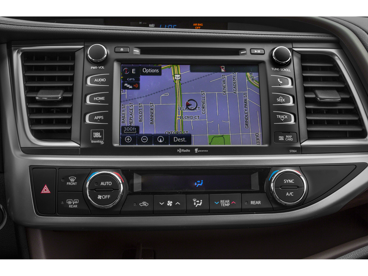 - Radio: Entune Premium JBL Audio w/Nav & App Suite -inc: the Entune Multimedia Bundle (8-inch high resolution touch-screen w/split screen display, AM/FM CD player, MP3/WMA playback capability, 12 JBL GreenEdge speakers, auxiliary audio jack, USB 2.0 port w/iPod connectivity and control, advanced voice recognition, hands-free phone capability, phone book access and music streaming via Bluetooth® wireless technology), Entune App Suite, Intelligent Touch controls, SiriusXM Radio w/3-month complimentary trial, HD radio, HD predictive traffic and doppler weather overlay, AM/FM cache radio, and Gracenotes album cover art