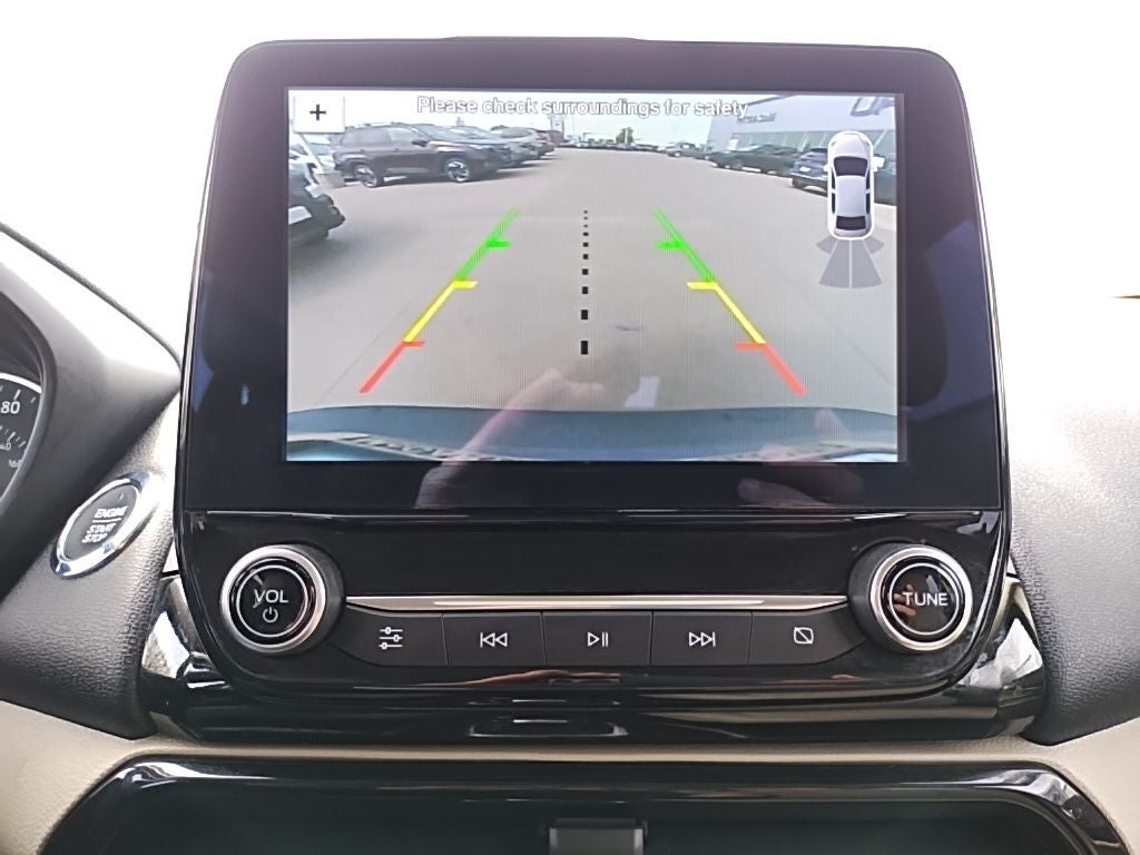 Inside, the Titanium trim pulls out all the stops. Premium leather-trimmed seating, a power moonroof, heated front seats, and a power drivers seat create a cabin that feels anything but compact. The SYNC 3 system with an 8-inch touchscreen, Apple CarPlay/Android Auto, and voice-activated navigation keeps you connected, entertained, and on the right track.