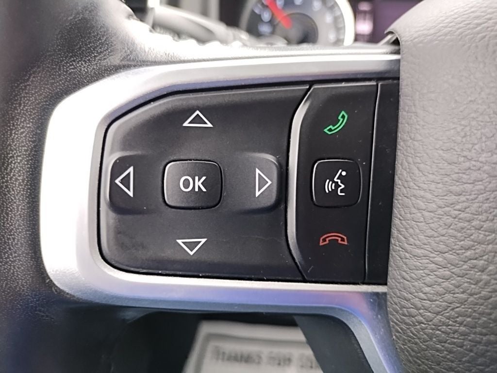 Inside the spacious Crew Cab, you'll find comfort that lives up to the Big in Big Horn. Premium cloth bucket seats, power driver seat with adjustable lumbar, heated front seats, heated steering wheel, dual-zone climate control, leather-wrapped steering wheel, and adjustable pedals make this truck road-trip ready. There's room for the whole crew and then some.