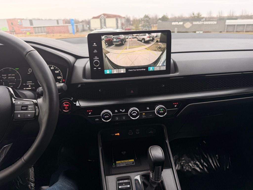 This 2023 CR-V Hybrid Sport Touring is powered by a 2.0L 4-cylinder Atkinson-cycle engine paired with Hondas two-motor hybrid system, producing a combined 204 horsepower. Power is delivered through an electronic continuously variable transmission (eCVT), providing smooth acceleration and confident performance. It achieves an EPA-estimated 40 MPG highway / 34 MPG city, delivering excellent efficiency without sacrificing drivability.